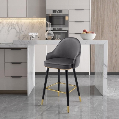 Deep Gray Velvet Counter Height Bar Stool with Footrest (Set of 2)