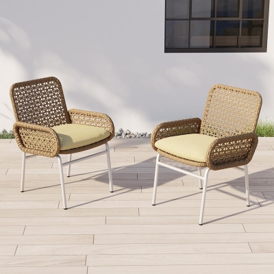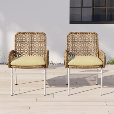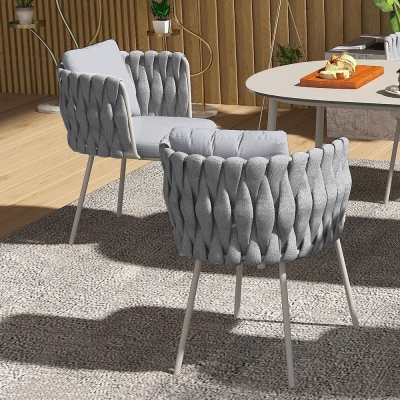 2 Pieces Mid Century Modern Aluminum & Rattan Outdoor Patio Dining Chair Armchair Gray