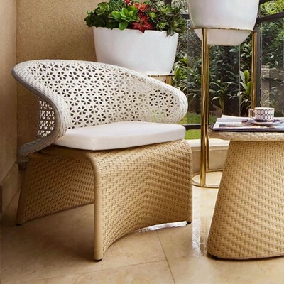 Hofer Outdoor Rattan Patio Armchair with White Cushion Arched Bottom Low-Back